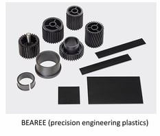There are sliding bearings made of resin, rolling bearings made of engineering plastic, resin rolling bearings and miniature resin sliding bearings available, used for industrial machine, automobile/electrical accessories, office machine, information device, water supply equipment and so on.